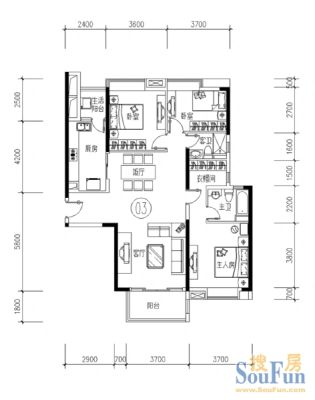 户型齐全,主打户型方正,明卫,双阳台,主卧朝南三居