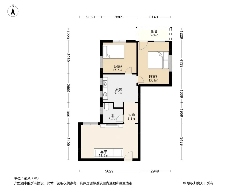 户型齐全,主打户型方正,明卫,明厨,客厅朝南,全明格局二居