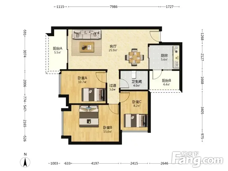 3室2厅1卫