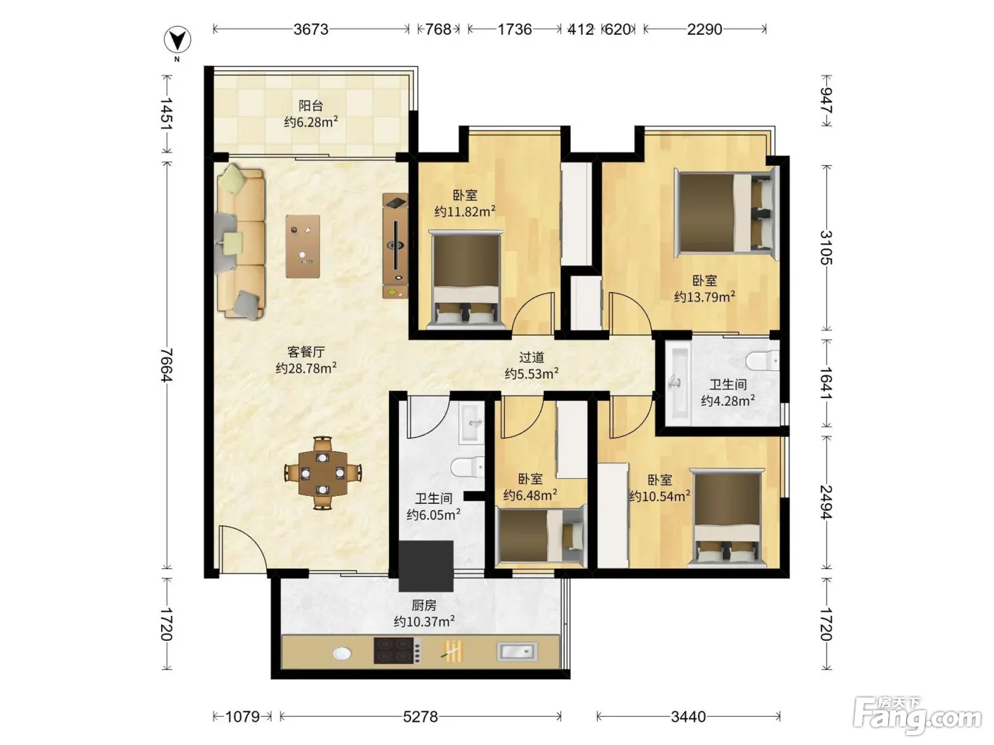 户型齐全,主打明卫,客厅朝南,双阳台三居