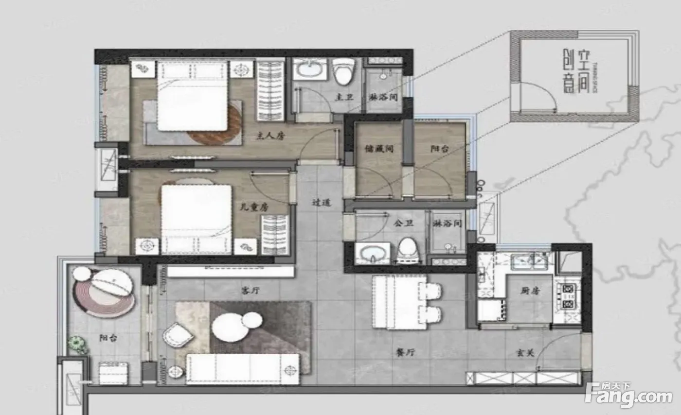 房屋拥有相对宽松的尺寸,布局通透,动静分离,设计豪华