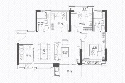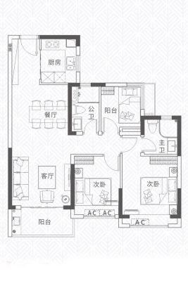户型齐全,主打户型方正,动静分离,采光充足三居