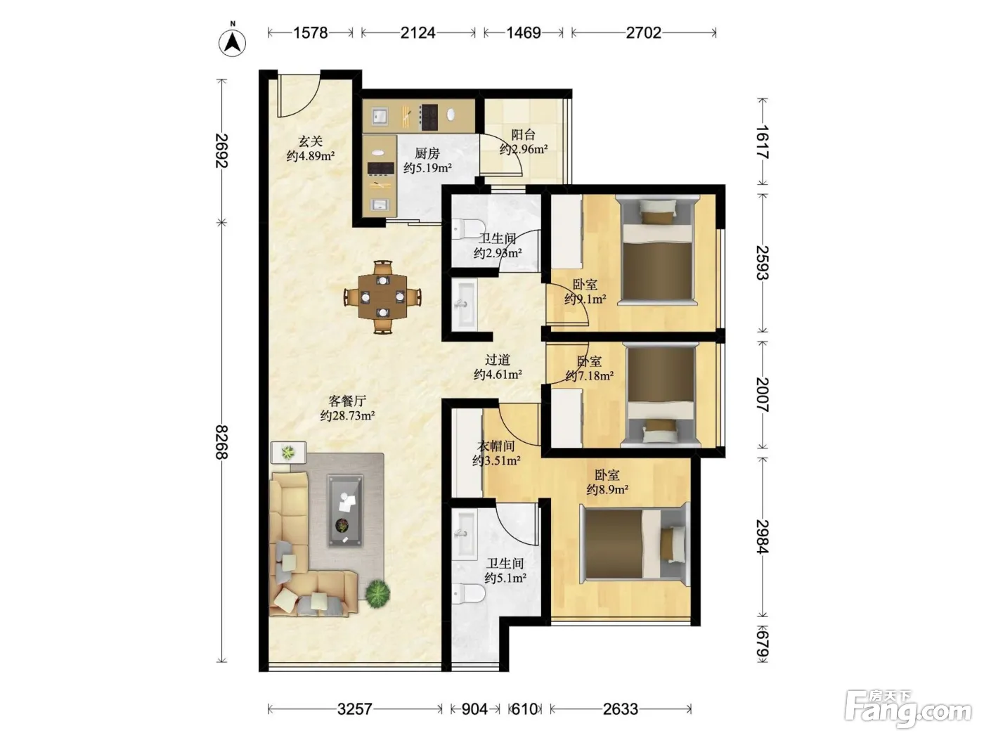 户型齐全,主打户型方正,主卧套间,大面宽阳台四居