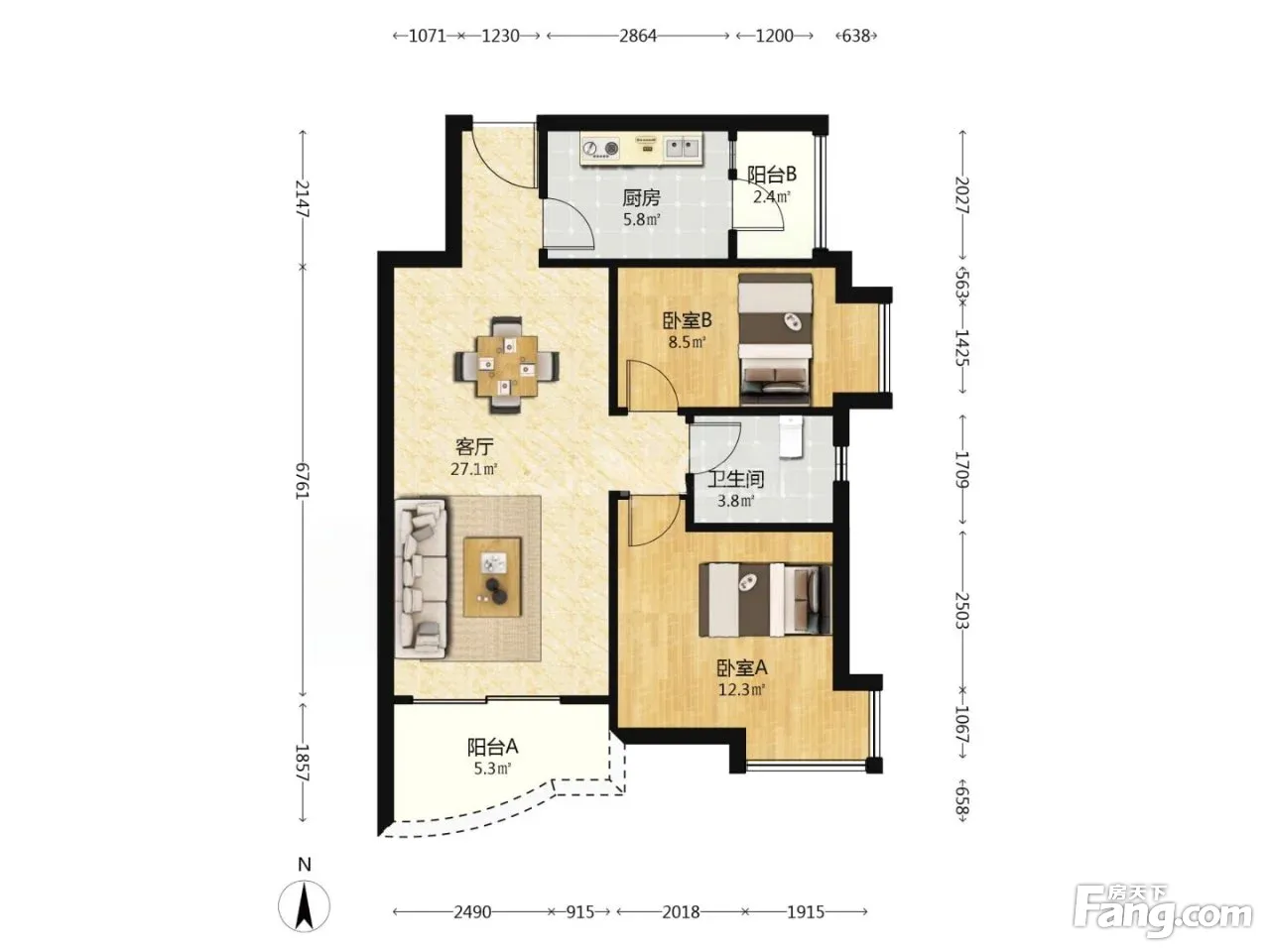 户型齐全,主打户型方正,明卫三居