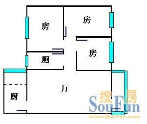 花季小区高层大二房,户型方正。