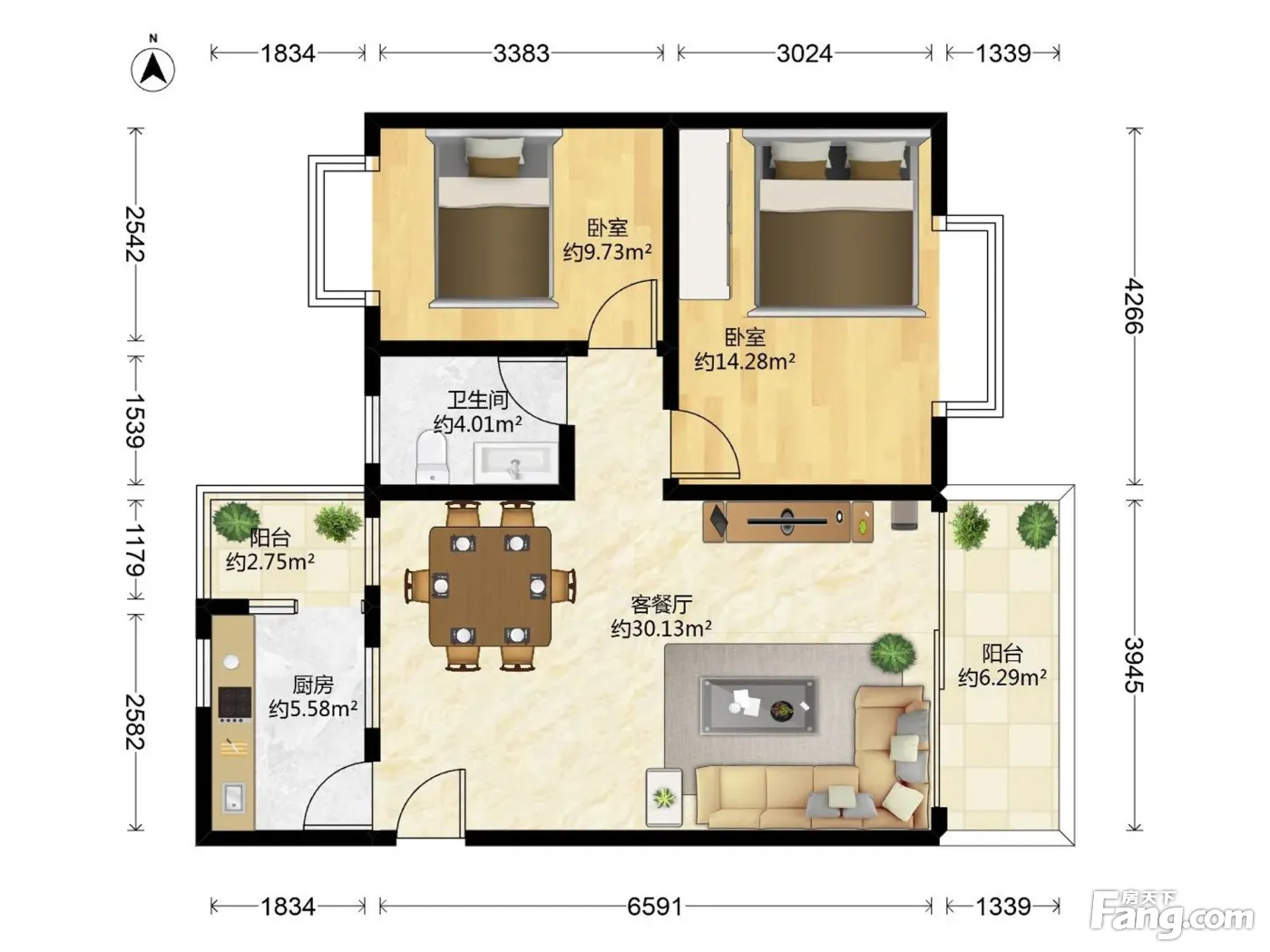 户型齐全,主打户型方正,明卫,客厅朝南二居