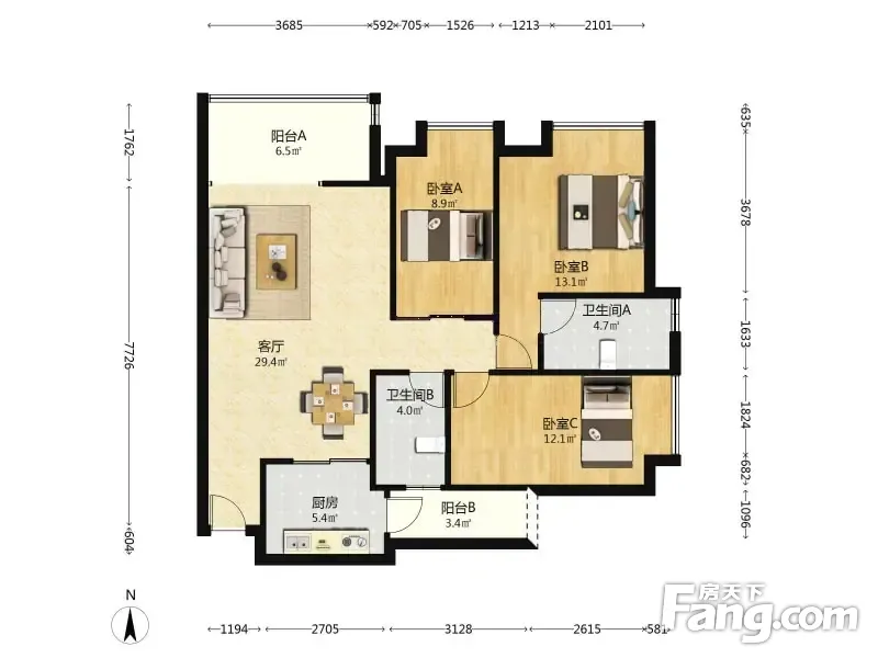 广弘天琪 3室2厅 东北