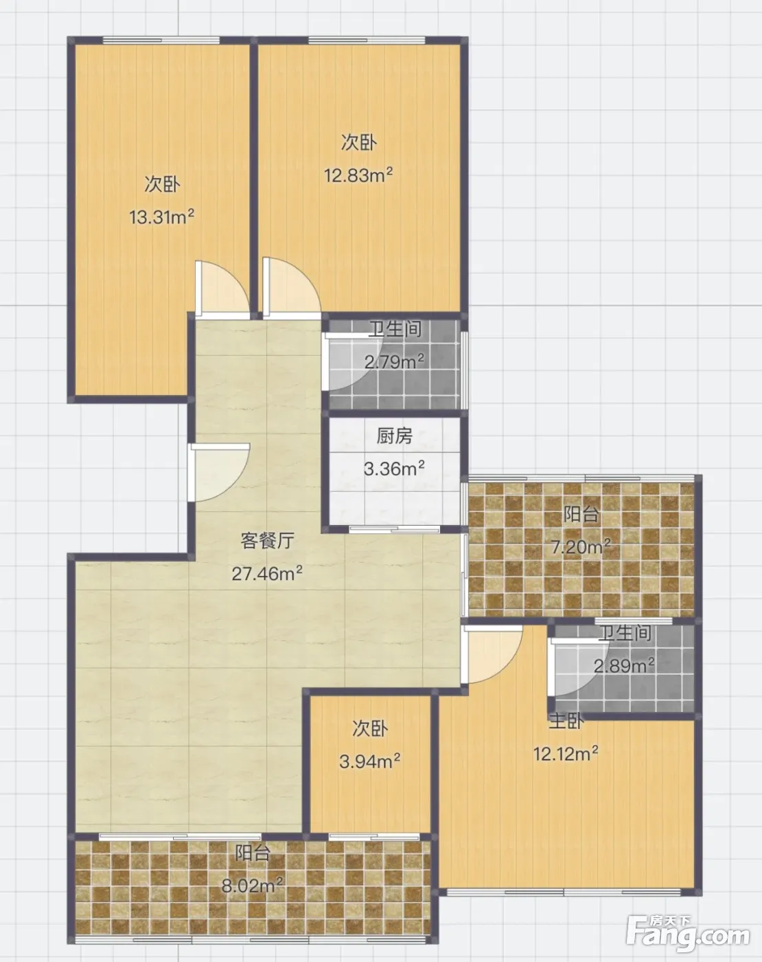 户型齐全,主打明厨,明卫,双阳台,主卧朝南三居