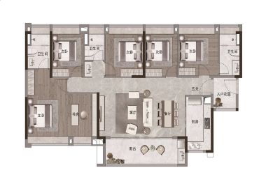 户型齐全,主打动静分离,采光充足,主卧带卫,大面宽阳台,入户花园三居