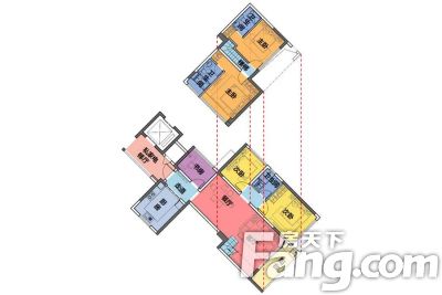 户型齐全,主打户型方正,主卧带卫,明厨明卫,大面宽阳台五居