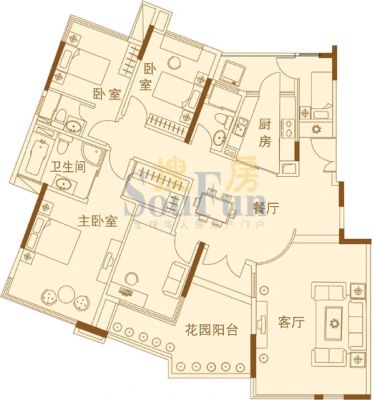 户型齐全,主打明卫,客厅朝南,双阳台三居