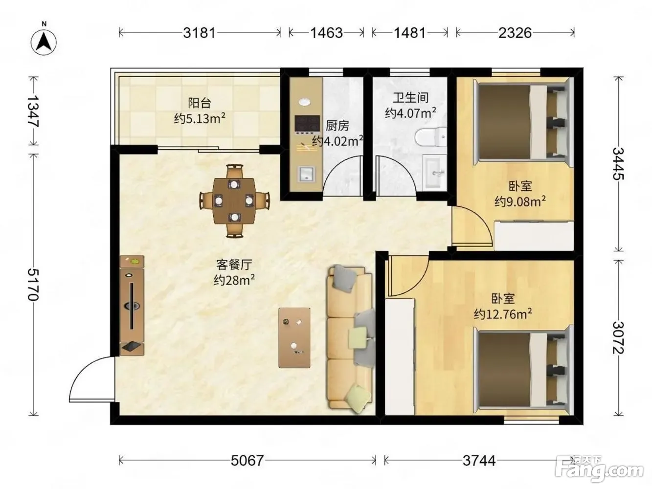 户型齐全,主打明厨,明卫,双卧朝南,主卧朝南二居