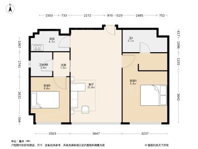 绿地大两房两卫 带厅出阳台户型 中层采光通风佳
