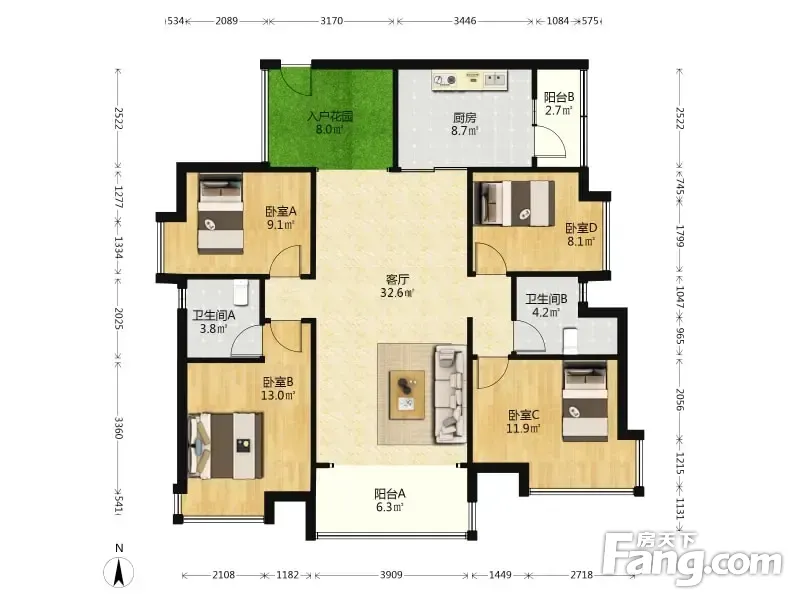 新福港鼎峰4室1厅东南南