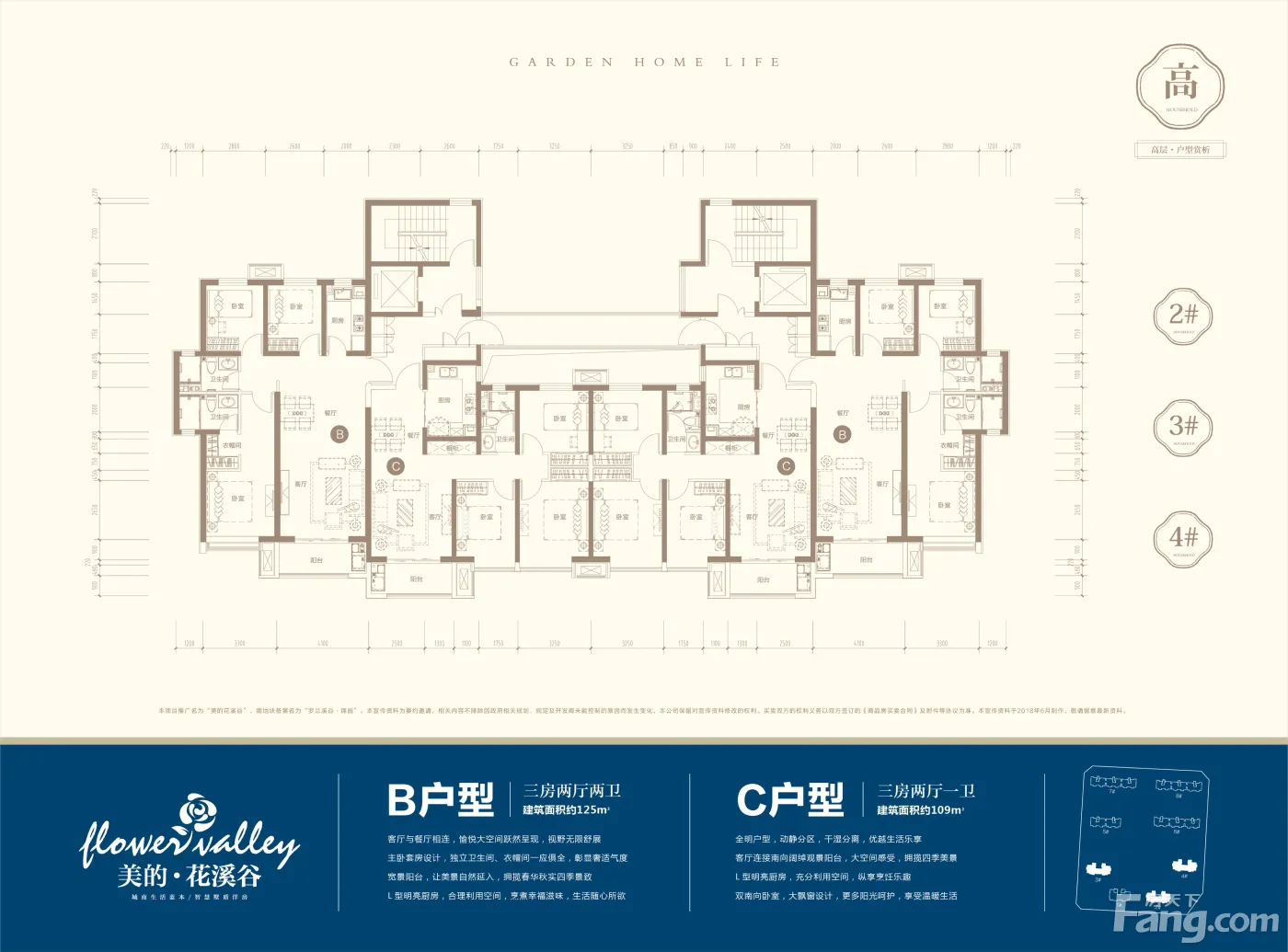 美的·花溪谷户型主要有109平-135平的户型方正,客厅朝南,L型厨房的三居 、53平-60平的户型方正,L型厨房的一居 、85平-85平的户型方正,动静分离的二居 。