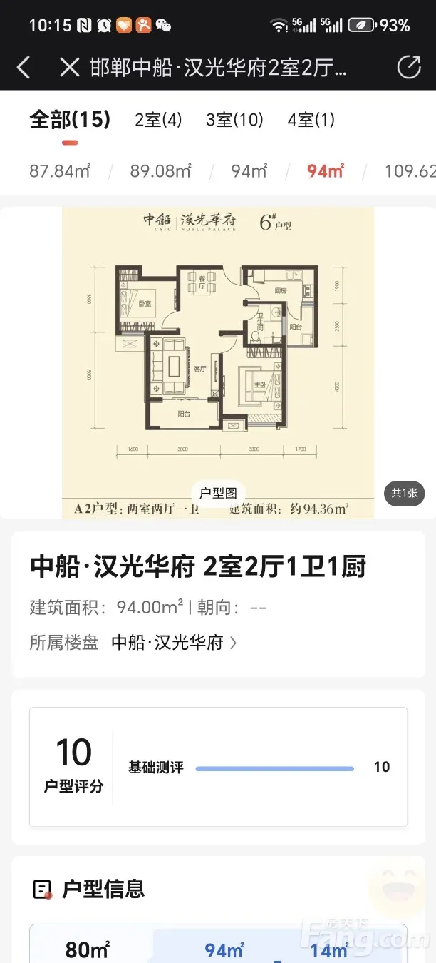 丛台 中船·汉光华府 2室1厅 94.00㎡ 140万
