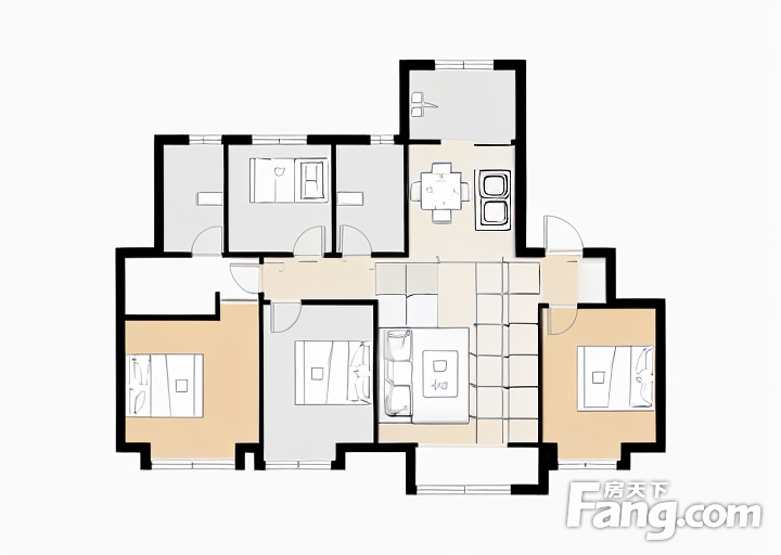 户型齐全,主打南北通透,客厅朝南三居