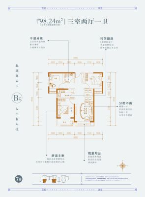 户型齐全,主打主卧朝南,明厨明卫三居