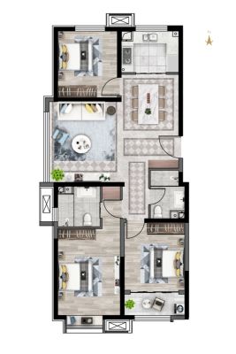 户型齐全,主打户型方正,主卧朝南三居
