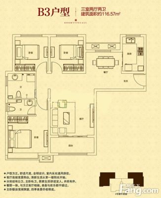 户型齐全,主打南北通透,客厅朝南,主卧朝南,主卧带卫三居