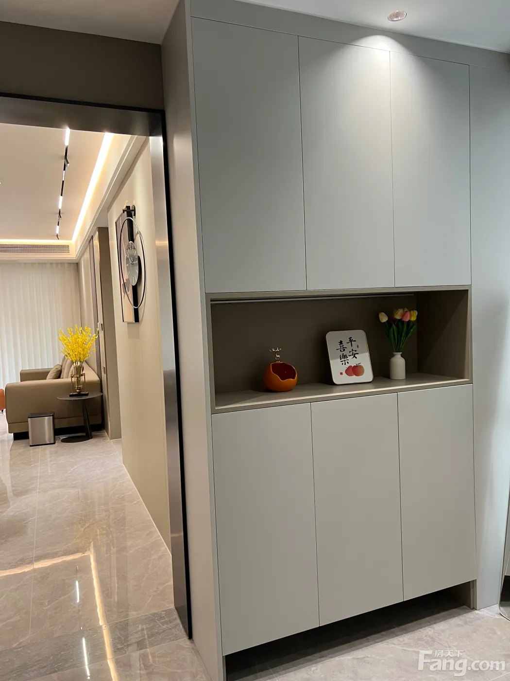 阳台望小区花园,楼距远,采光好。装修风格现代无主灯,装修材料都是采用高端材料,品质好保养好。
