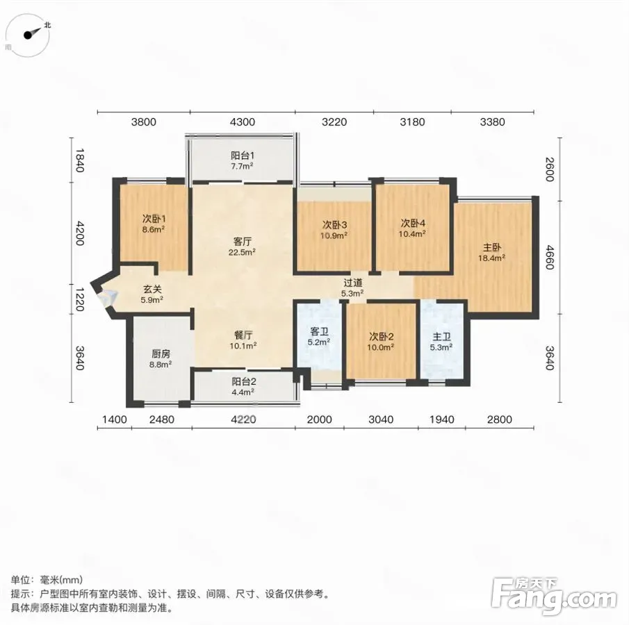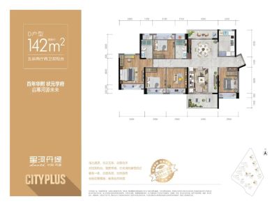 我们高层143平户型是五房两厅两卫设计,奢阔的空间尺度感,基 本上可以满足市面上各类刚改客户的需求。 【入户花园及阳台】入户花园+阳台面积超过21平,意味着这里有 超过10平米的空间是赠送的; 【客餐厅】客餐厅的开间有4.3米,空间舒适感拉满,户型南北通 透,采光 ; 【卧室】主卧空间超过17平,次卧空间全部在11平以上,尺度感 拉满