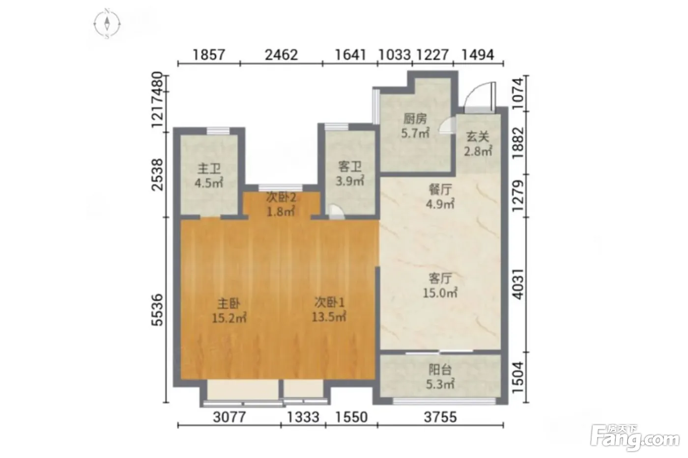 户型齐全,主打动静分离,三开间朝南三居