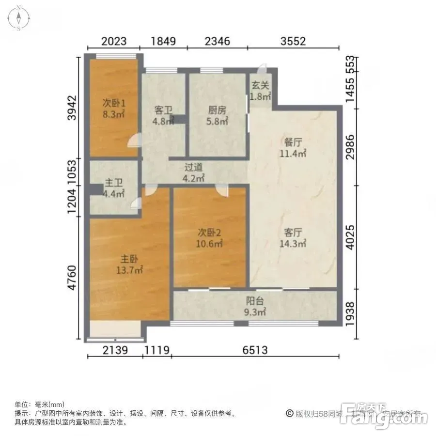 万达融园 119平3居 南北向精装修 自住保养好