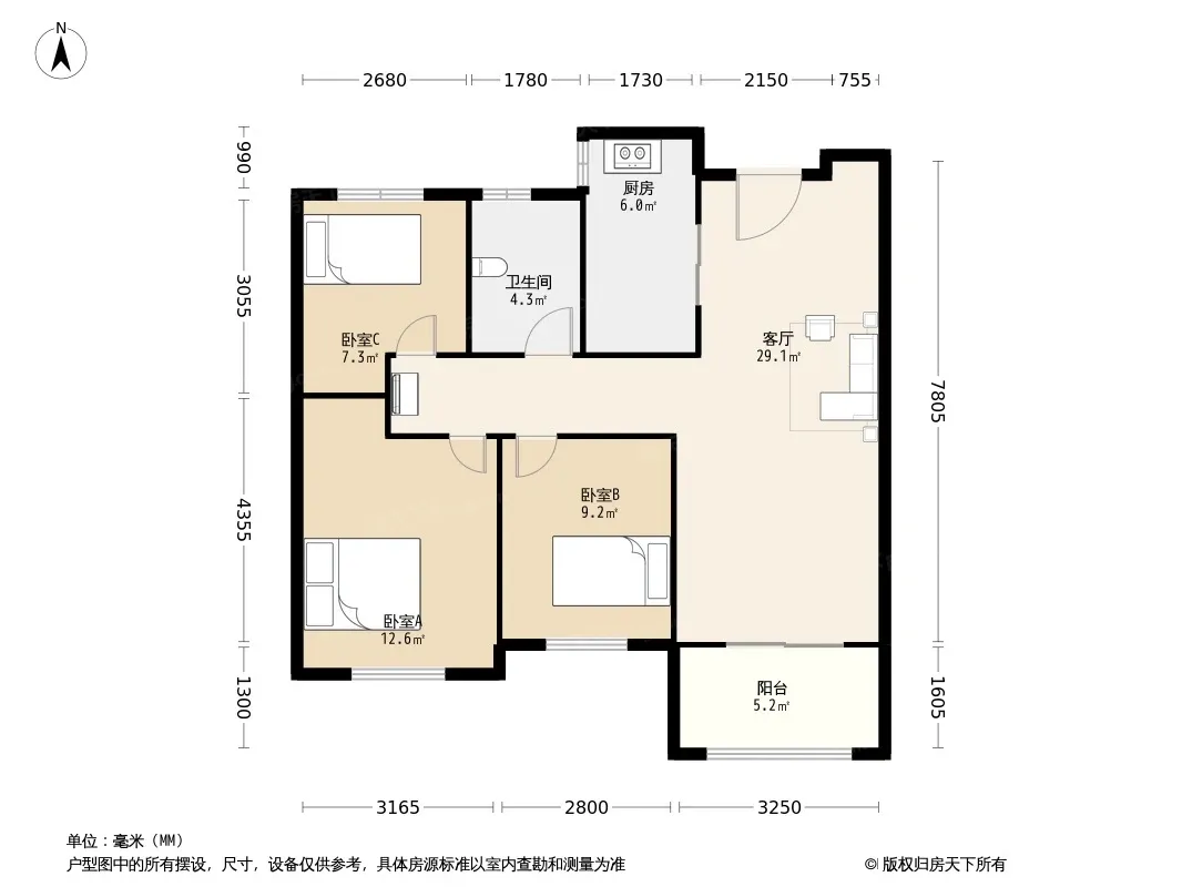 户型齐全,主打户型方正,明卫,明厨,客厅朝南,全明格局,主卧朝南三居