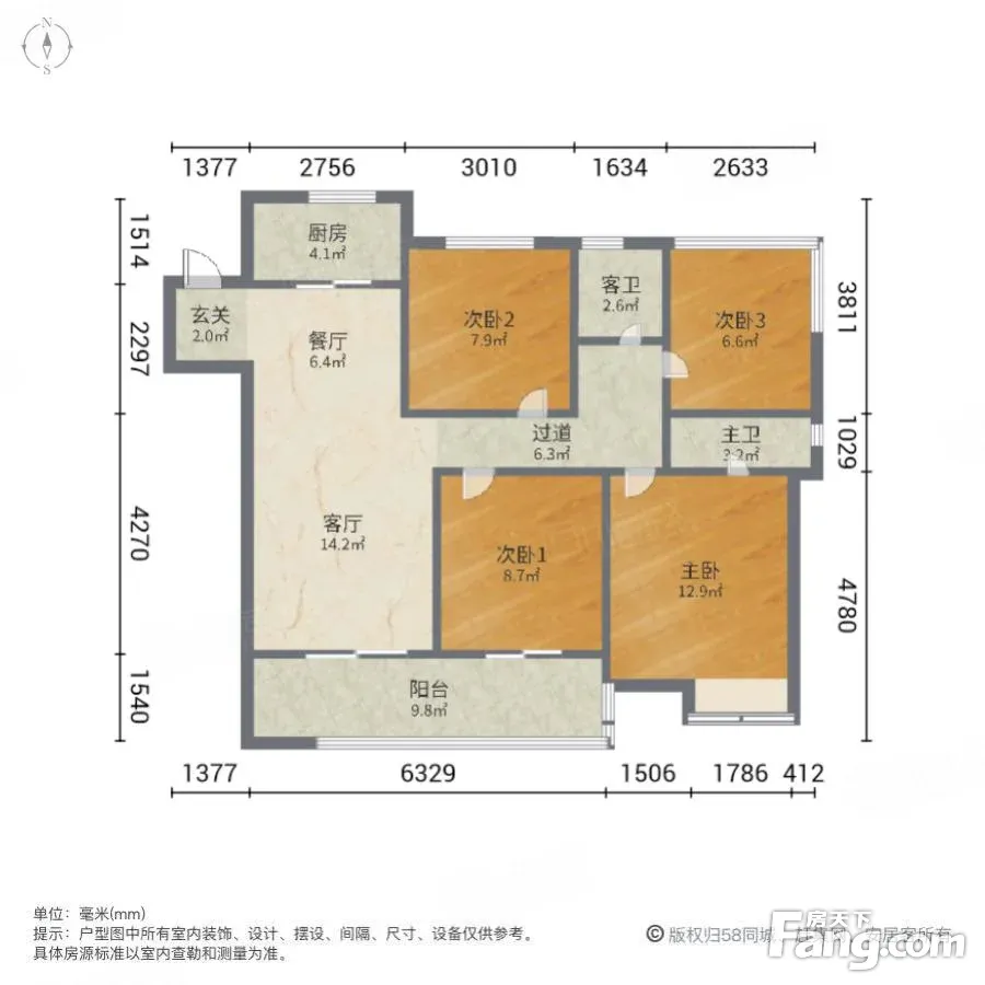 户型齐全,主打南北通透,客厅朝南三居