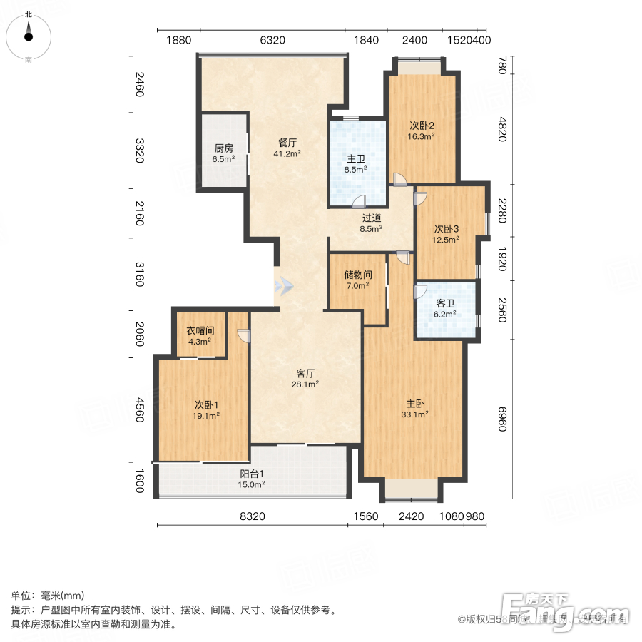 户型齐全,主打户型方正,独立衣帽间,明卫,双阳台,主卧朝南三居