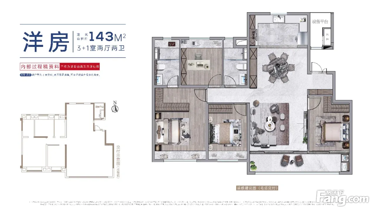 户型齐全,主打南北通透,全明格局,户型方正,动静分离,高附赠空间,采光充足,三开间朝南,观景落地窗三居