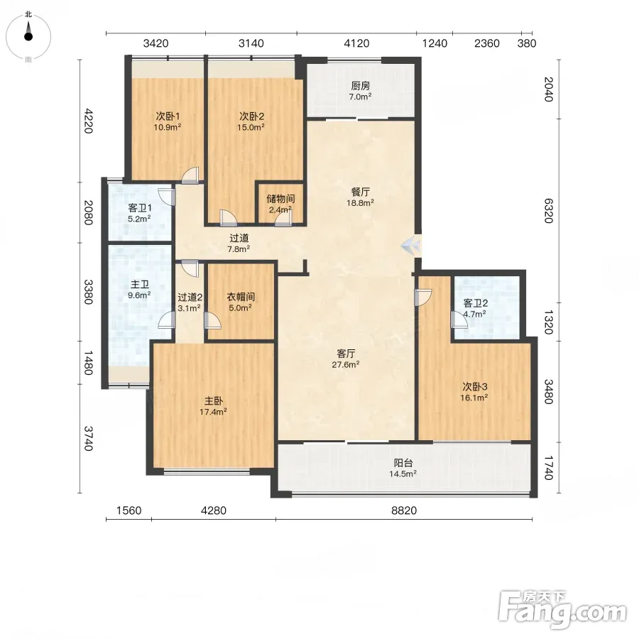 南北通透 融创合肥壹號院 4室2厅 精装修