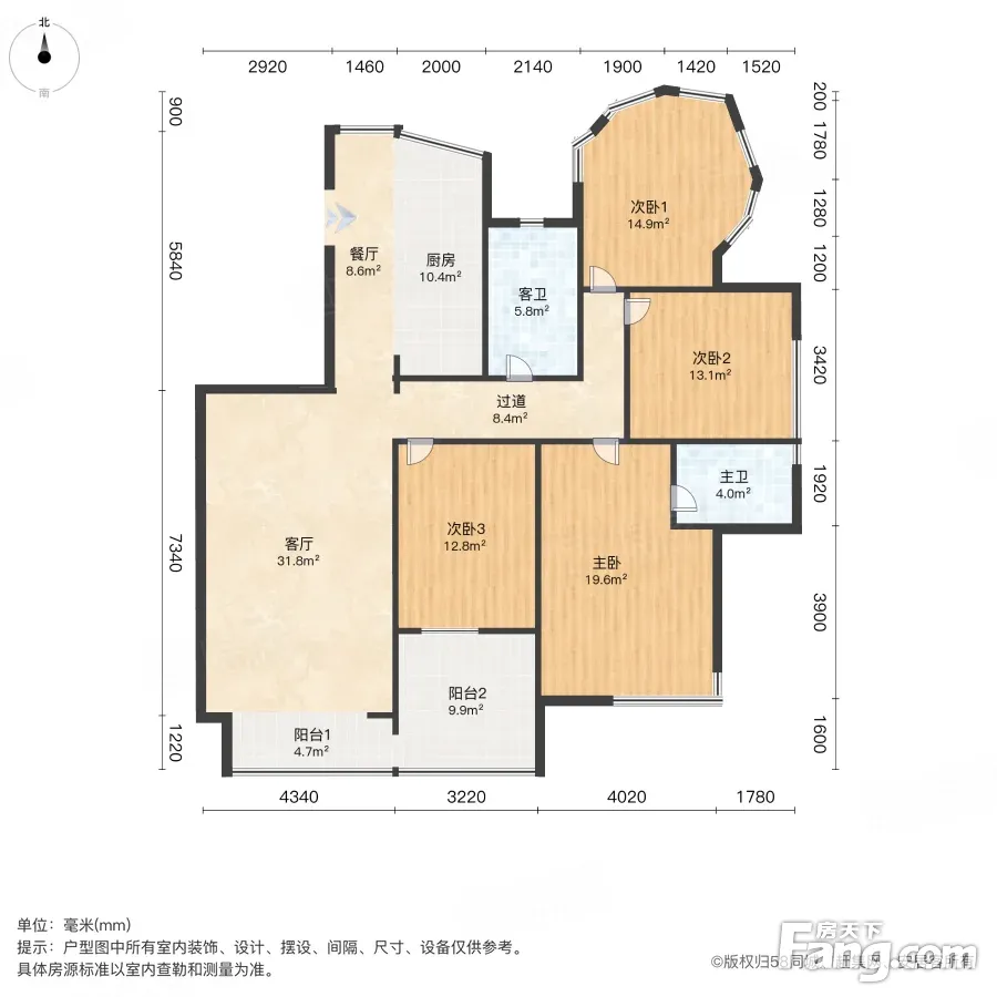 户型齐全,主打明卫三居
