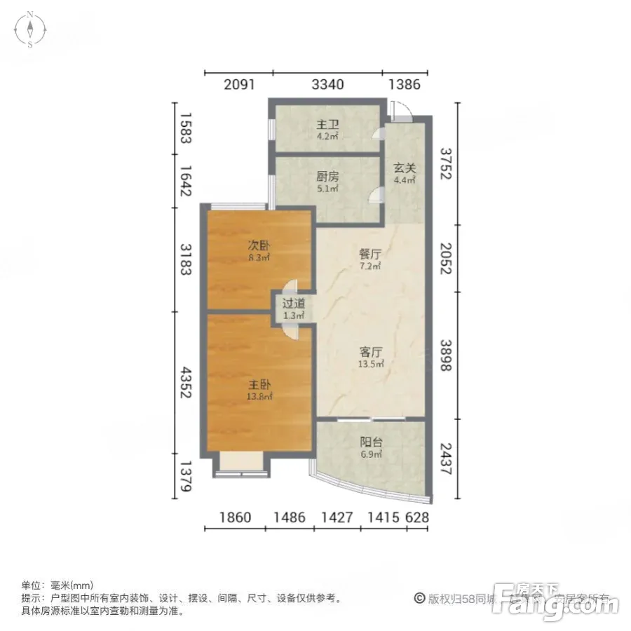 南北通透 百商悦澜山 2室2厅 精装修