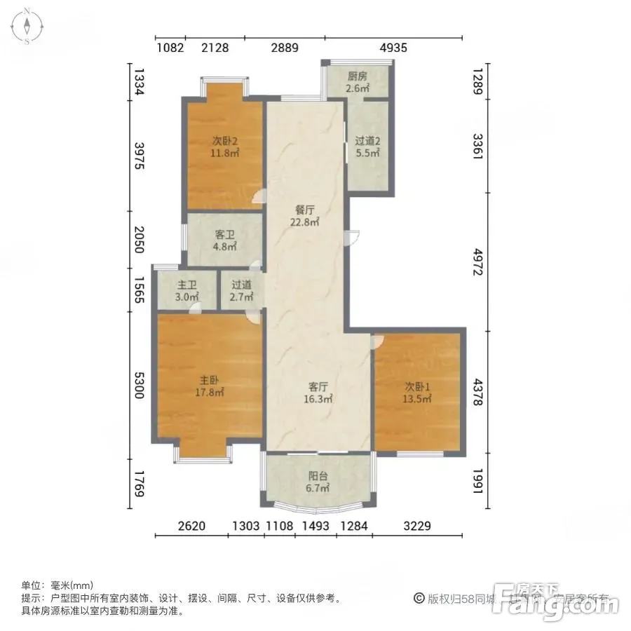户型齐全,主打户型方正,明卫,明厨,客厅朝南,主卧朝南三居