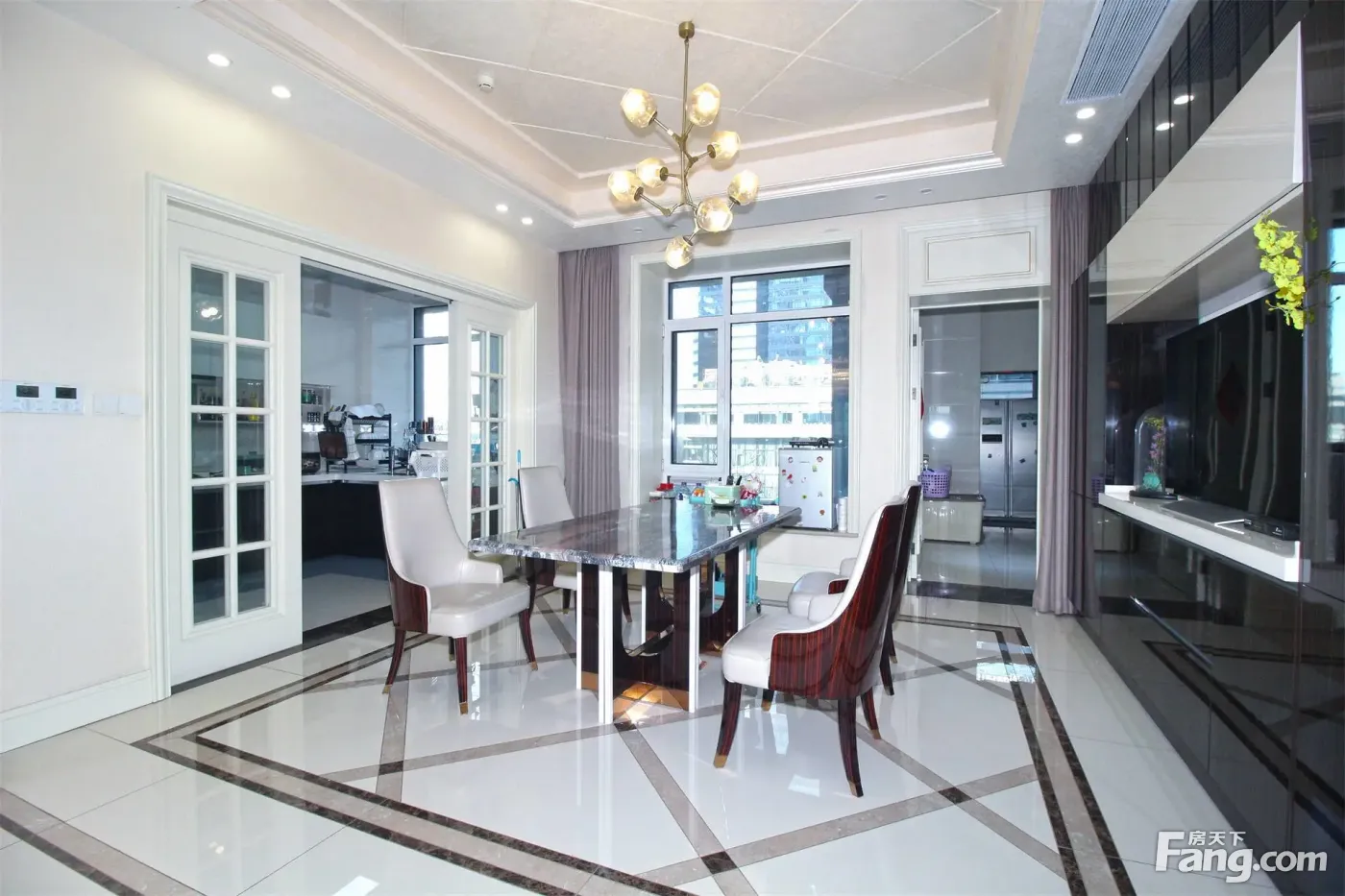 1.房型结构:三房朝南,一房朝北,一房朝西,南北通透,全明户型,客厅带阳台,动静分离,户型漂亮; 2.装修情况:精装修五房 3.采光通风:楼层佳,全天采光,全通透,通风效果好;