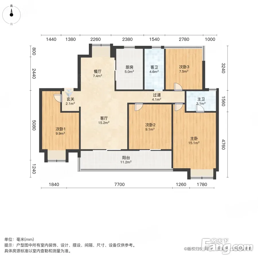 户型齐全,主打南北通透,客厅朝南三居