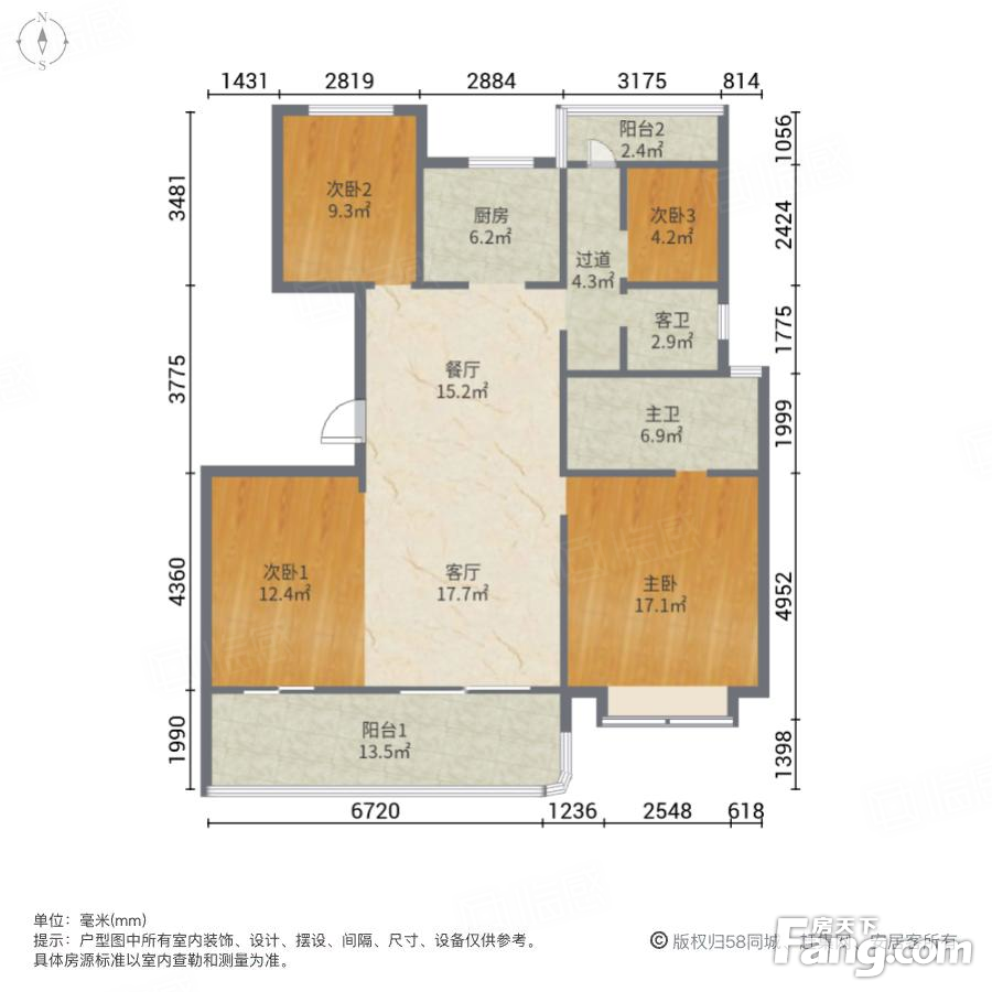户型齐全,主打南北通透,客厅朝南三居