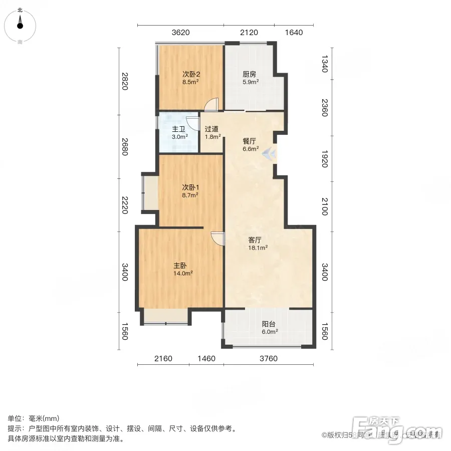 户型齐全,主打南北通透,客厅朝南三居
