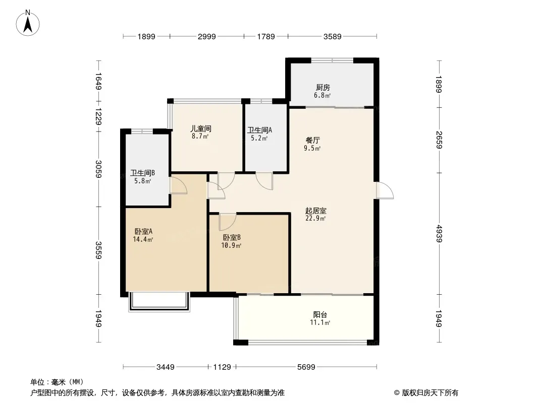 户型齐全,主打南北通透,客厅朝南三居