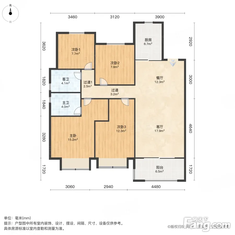 户型齐全,主打南北通透,客厅朝南四居