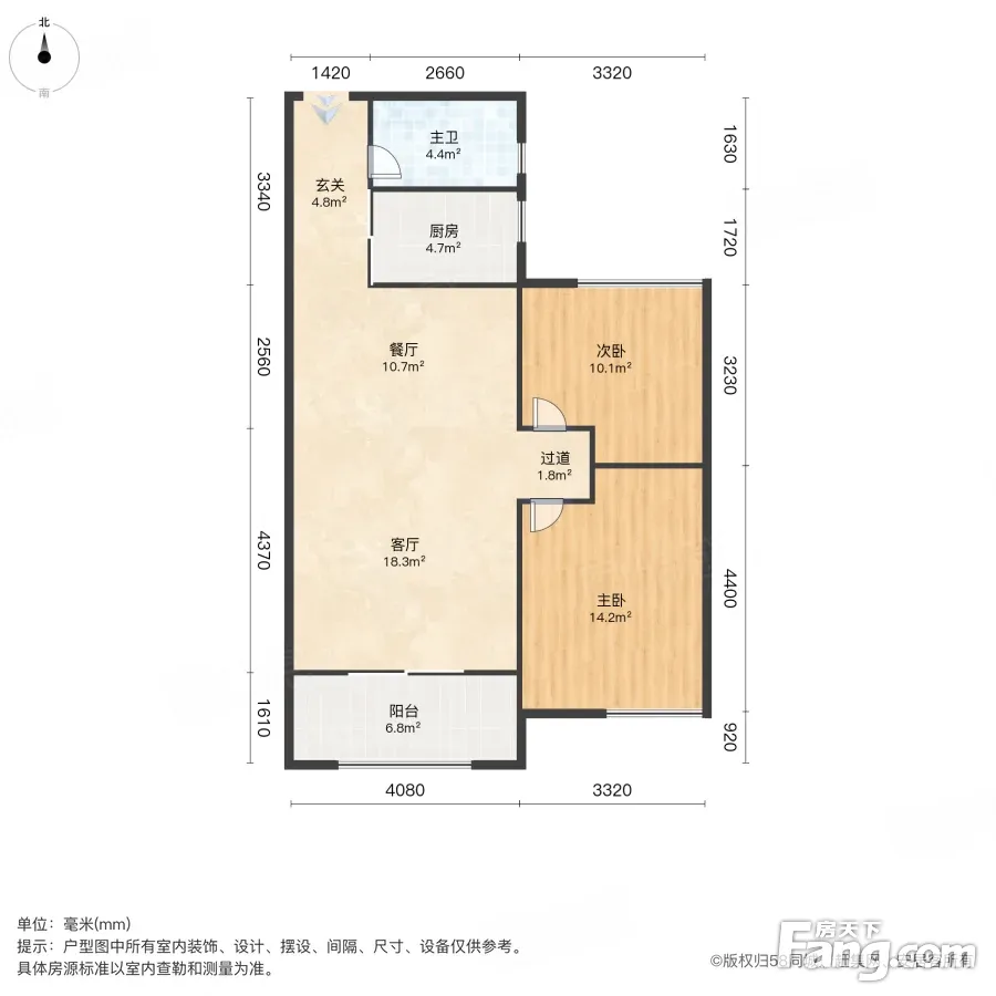 1.房型结构:一房朝南,一房朝北,全明户型,客厅带阳台,动静分离,户型漂亮; 2.装修情况:精装修两房 3.采光通风:楼层佳,全天采光,全通透,通风效果好;