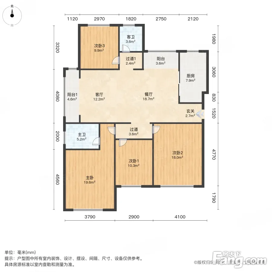 户型齐全,主打户型方正,明卫,明厨,主卧朝南三居