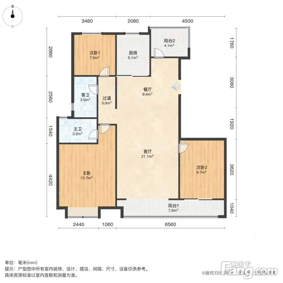 户型齐全,主打南北通透,全明格局,户型方正,三开间朝南三居