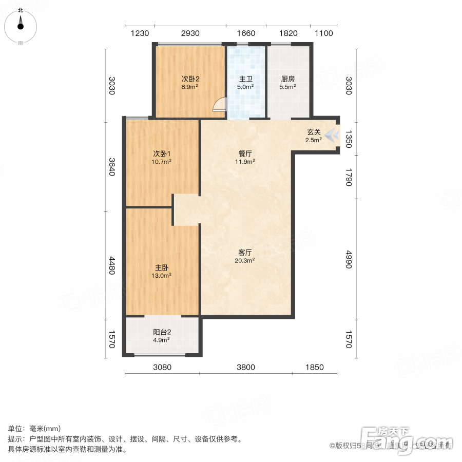户型齐全,主打动静分离,三开间朝南三居