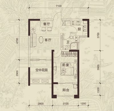 户型齐全,主打明卫,明厨一居