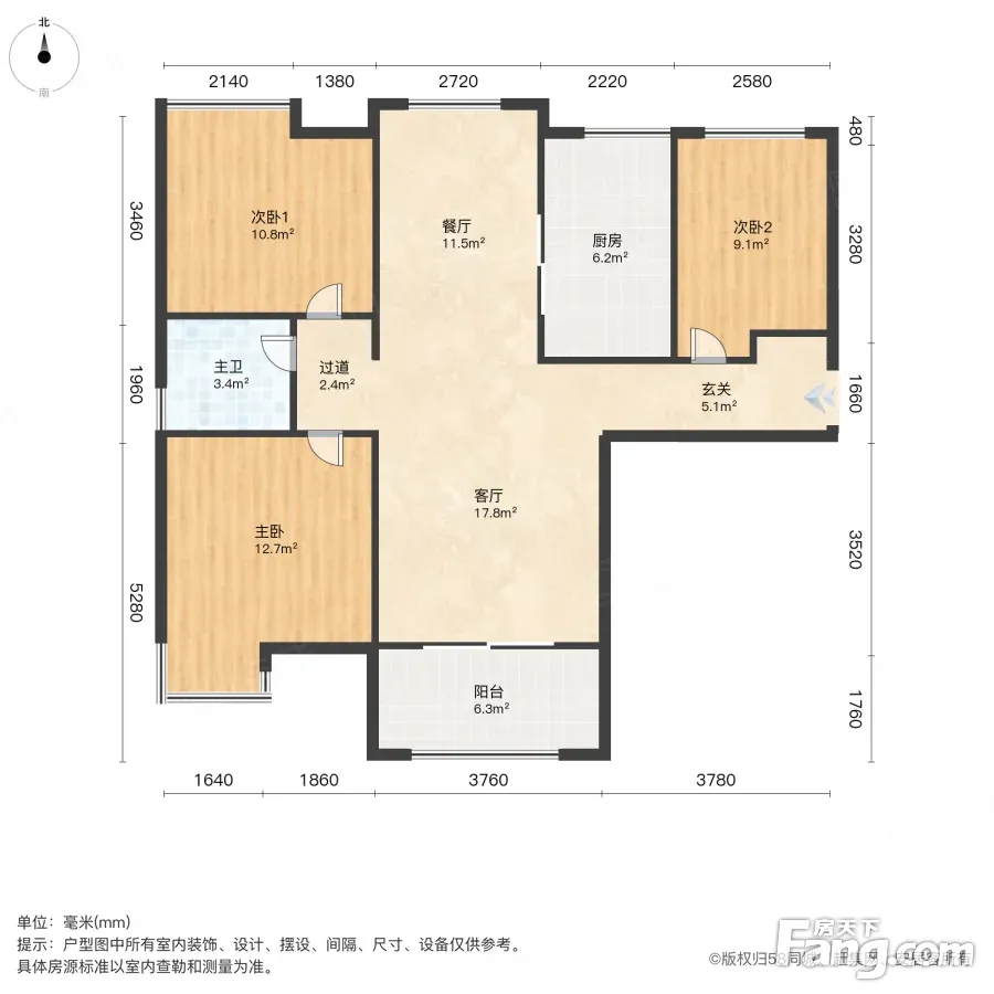 户型齐全,主打户型方正,明厨,明卫,独立衣帽间,客厅朝南,全明格局,主卧朝南三居
