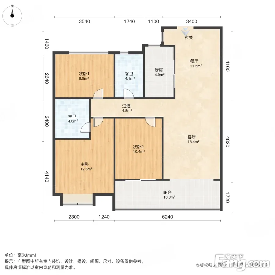 户型齐全,主打南北通透,客厅朝南三居