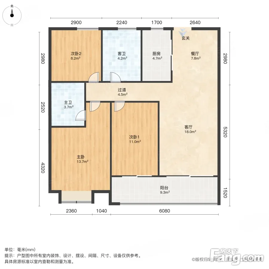 户型齐全,主打南北通透,客厅朝南三居